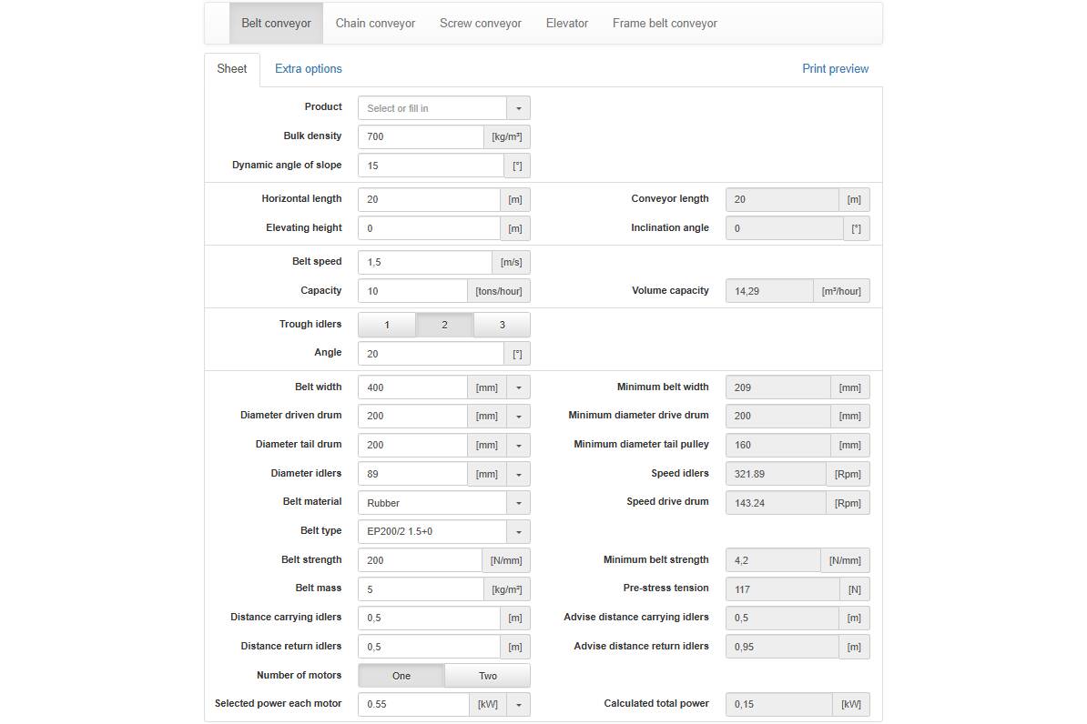 Das Berechnungsprogramm ist für jeden kostenlos nutzbar und erfordert keine Anmeldung. Beginnen Sie noch heute mit der Auslegung Ihres Fördersystems. Benötigen Sie Unterstützung? Das Ingenieurteam von Jansen&Heuning steht Ihnen gerne zur Verfügung.