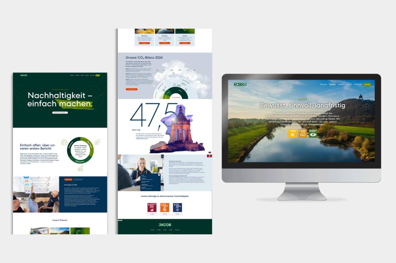 Mit diesem Bericht machen wir sichtbar, wie Nachhaltigkeit bei JACOB gelebt wird. Wir laden Sie ein, sich selbst ein Bild davon zu machen, was uns antreibt und wie wir gemeinsam Verantwortung übernehmen.