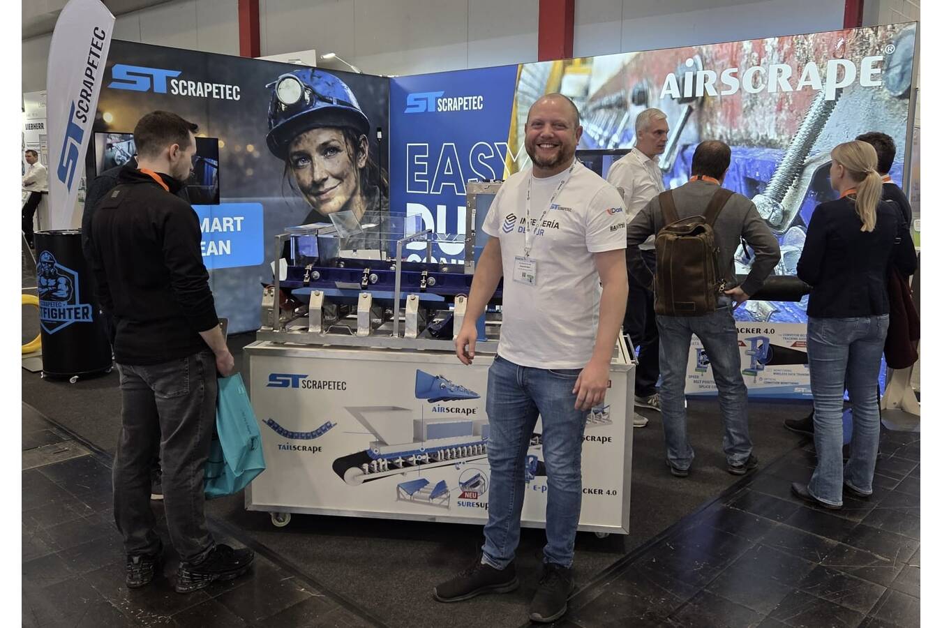 Ein zentrales Thema an unserem Stand war die staubfreie Förderbandübergabe – ein Bereich, in dem Scrapetec mit innovativen Technologien neue Maßstäbe setzt. Besonders großes Interesse galt unseren Lösungen AirScrape und DustBox, die Staubemissionen effektiv und nachhaltig kontrollieren. Beide Systeme arbeiten kontaktlos, wartungsfrei und komplett ohne Energieverbrauch – ein klarer Vorteil für Anwender, die auf Effizienz, Sicherheit und Umweltbewusstsein setzen.