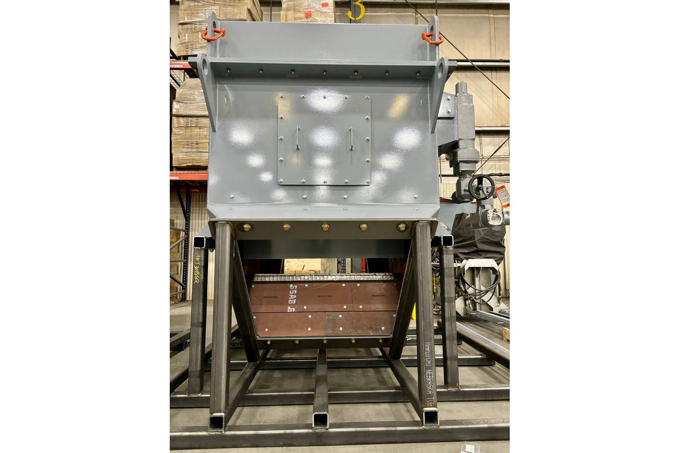 • Einlass-Schacht und interner Schwenkschacht (beide austauschbare Teile) sind aus abriebfestem Stahl (mindestens 400 BHN) gefertigt.