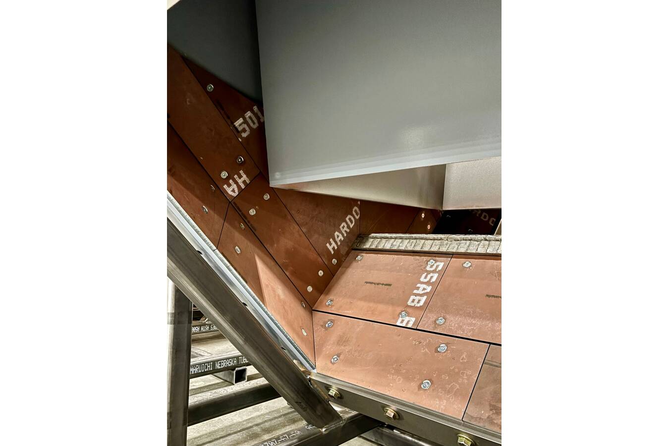 • Auslass-Schächte und der untere Teil der Weiche (Materialkontaktflächen) enthalten austauschbare AR400-Auskleidungen.