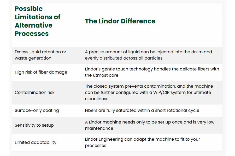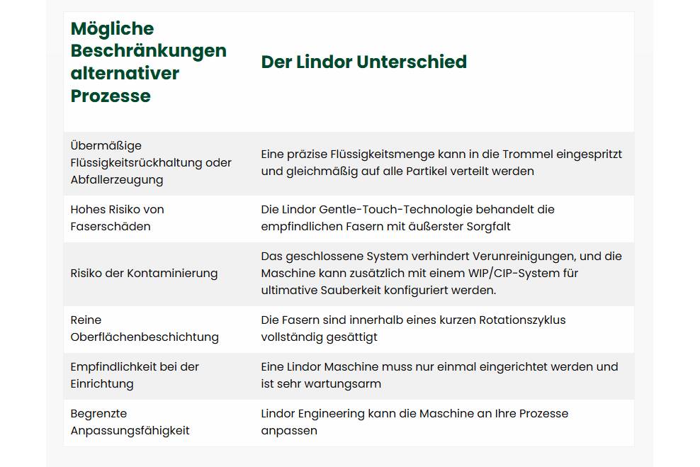 Wussten Sie, dass der Rotationstrommelmischer von Lindor mit einem fortschrittlichen Beschichtungssystem für empfindliche Fasern konfiguriert werden kann?