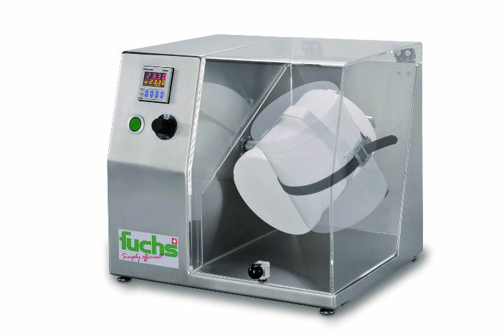 Der Labormischer eignet sich für viele unterschiedliche Applikationen wie Mischen, Homogenisieren, Einfärben, Aufmischen von sedimentierten Flüssigkeiten usw. Der MIXOMAT mini von FUCHS Maschinen AG ist ein Freifallmischer und wurde speziell für Laboranwendungen konzipiert. Der Labormischer eignet sich für viele unterschiedliche Applikationen wie Mischen, Homogenisieren, Einfärben, Aufmischen von sedimentierten Flüssigkeiten sowie Polieren von Metall- oder Kunststoffteilen und vieles mehr. Dieser Mischer hat die gleichen Eigenschaften wie die großen MIXOMAT Fassmischer. Durch die äußerst kompakte Bauform eignet sich der kleine Fasstaumler optimal für den Laborbereich, für Pilotanlagen oder für kleine Produktionen. Der MIXOMAT mini Taumelmischer wird standardmäßig mit je einem 0,5, 1,0 und 2,0 Liter Behälter in Kunststoff geliefert. Optional sind auch Edelstahlbehälter bis 1,0 Liter lieferbar. Die Funktionsweise ist identisch mit den großen MIXOMAT-Brüdern: Der mit max. 70 % seines Bruttovolumens gefüllte Behälter wird während der vorgewählten Zeit über Kopf gedreht. Durch die geneigte Stellung