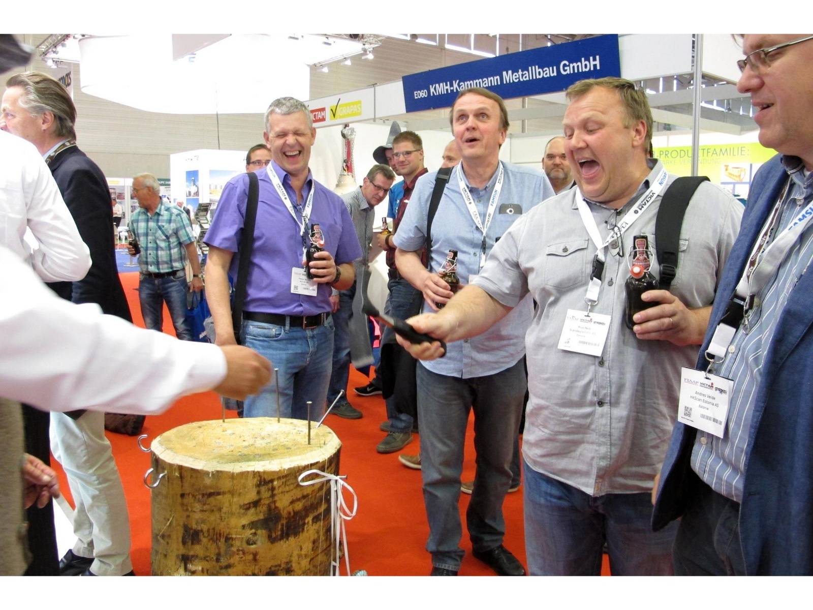 Uwe Niekrawietz und Andrea Fisher mit dem Tagessieger der Messe