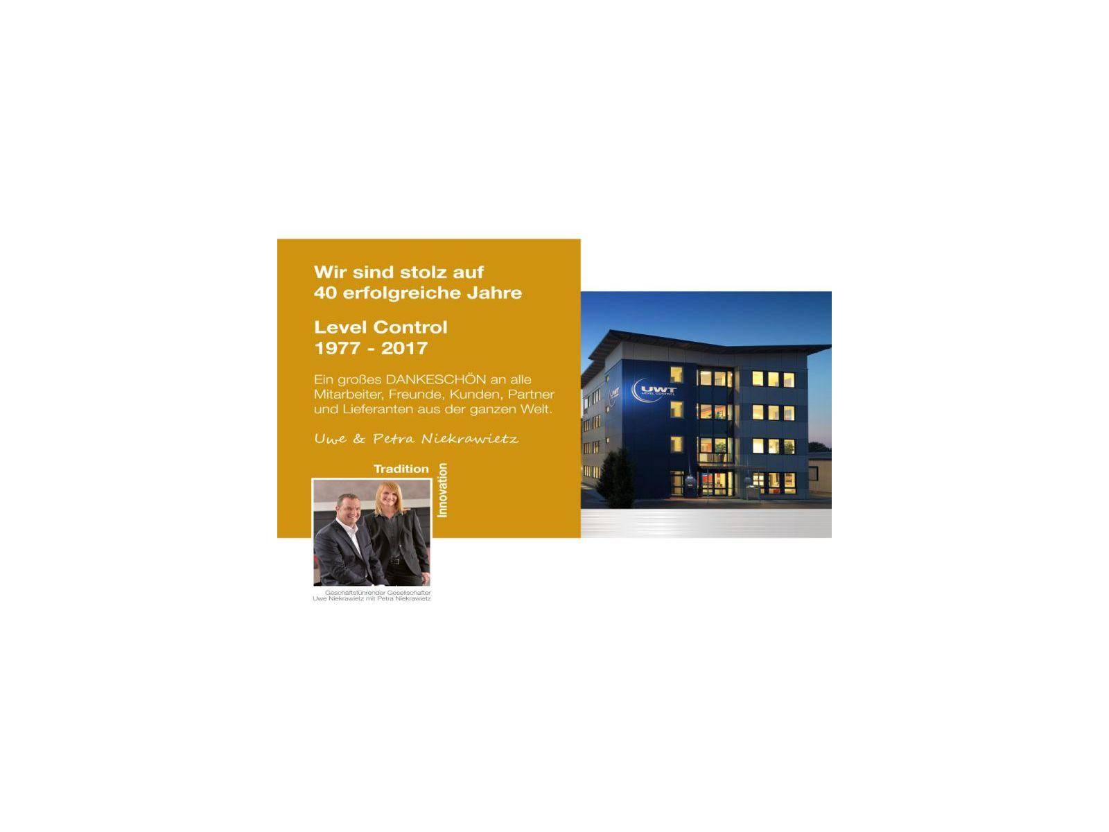 LEVEL. UP TO THE MAX. Die UWT GmbH in Betzigau ist der Experte für Füllstandmesstechnik und ein zuverlässiger, global führender Lösungsanbieter für die sichere und messgenaue Erfassung von Füllständen und Grenzständen in Siloanlagen und materialverarbeitenden Prozessen in verschiedensten Branchen. Ganz gleich, ob Schüttgut, Feststoffe, Flüssigkeiten, Pasten oder Schäume. UWT gilt mit Produktlinien wie Rotonivo®, Vibranivo® oder NivoBob® als Synonym für die perfekte Messtechnik-Lösung in fast jeder Anwendung. Mit zwei Produktionsstätten in Betzigau und auf Malta sowie weiteren Standorten u.a. in den USA, China, Indien, Brasilien, Mexiko, Großbritannien, Spanien und Polen wurden mittlerweile mehrere Millionen Anwendungen ins Feld gebracht. Damit steht UWT weltweit für Füllstandmessung auf höchstem Niveau. Das Ganze basiert auf den drei starken Säulen Technology, Performance und Partnership und einer Zusammenarbeit auf Augenhöhe mit den Kunden, Lieferanten, Partnern und den ca. 200 Mitarbeiter:innen. Im Bereich Grenzstand bei Schüttgut hat UWT eine strategische Position im Markt erreicht und mit dem Drehflügelmelder neue Standards gesetzt. Zudem wird eine durchgängige Digitalisierung angeboten: von modernsten eTools, die eine einfache und schnelle Produktauswahl, Konfiguration und Inbetriebnahme ermöglichen, über die leichte, intuitive Bedienung bis hin zur innovativen Gerätekommunikation, für den reibungslosen Betrieb. Die hohe Qualität und Zuverlässigkeit der UWT-Produkte, das robuste Design, die einfache Handhabung und die Langlebigkeit der Sensoren sorgen für geringe Ausfallzeiten, eine hohe Anlagenverfügbarkeit und damit auch für ein hohes Maß an Sicherheit im laufenden Betrieb. Das alles made in Germany. So hat sich auch das Produkt- und Leistungsspektrum kontinuierlich weiterentwickelt und umfasst mittlerweile auch Überwachungs- und Visualisierungssysteme sowie die komplette Anlagenprojektierung - ein weiterer Beweis dafür, wie konsequent die UWT GmbH auf Wachstum ausgerichtet ist. Als inhabergeführtes, deutsches, mittelständisches Unternehmen ist UWT mit einem internationalen Vertriebsnetzwerk in über 90 Ländern mit persönlichen Kontakten vor Ort bestens aufgestellt. Eine authentische und ehrliche Zusammenarbeit mit den Kunden und Partnern zeichnen UWT ebenso aus, wie die engagierten und zufriedenen Mitarbeiter:innen. Der spürbar großartige Teamspirit sorgt dafür, dass sich UWT wie eine große Familie anfühlt – und das ist es, was zählt. - LEITBILD Soziales Engagement und gesellschaftliche Verantwortung sind bei UWT wesentliche Bestandteile der Unternehmensphilosophie. Dabei liegt der Fokus auf Sport, Kultur und Sozialem. Auch Umweltschutz und Verantwortung für die Zukunft werden bei UWT groß-geschrieben. Die Bereitstellung von E-Ladestationen, langlebige, ressourcenschonende Produkte und der Einsatz von Ökostrom sprechen für sich.