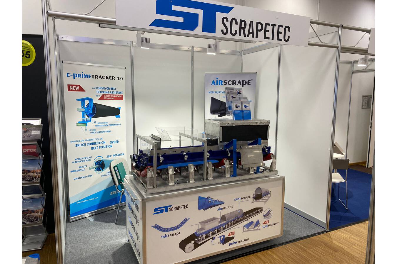 Scrapetec Messebericht bauma 2022 München ScrapeTec präsentierte auf der bauma 2022 in München seine innovativen Staubschutz-Lösungen für Fördertechnik und dazu die Weltneuheit E-PrimeTracker.