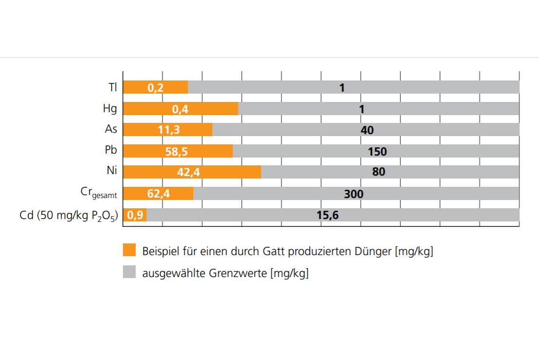 Im Vergleich zu anderen Recyclingverfahren zur Phosphatrückgewinnung, die erhebliche Abfallmengen produzieren, ist dieses Verfahren zu 100 % abfallfrei, so dass die Asche vollständig verwertet werden kann. Darüber hinaus ist der gesamte Prozess ebenfalls abfallfrei. Dabei entstehen keine schädlichen Zwischenprodukte. Auch enthalten die so produzierten Dünger bis zu 92 % weniger Cadmium und Uran als die konventionell hergestellten Mineraldünger, deren Phosphatquellen teilweise stark belastet sind. Zudem liegt der Schadstoffgehalt der neuen Düngemittelgranulate deutlich unter den gesetzlichen Grenzwerten (Bild 6). Auch aus wirtschaftlicher Sicht ist es interessant, dass für die Düngemittelproduktion kein Rohphosphat und weniger Energie benötigt wird. Durch die mit „PHOS4green“ produzierten Dünger können sich hiesige Produzenten unabhängig von den internationalen Phosphatlagerstätten machen, indem sie lokale Phosphatquellen durch die Nutzung von Klärschlammaschen erschließen.