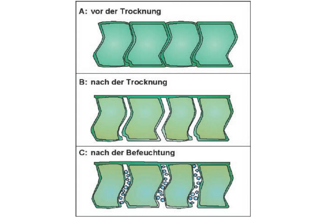 Ein Beispiel, wie vor allem in biologischen Materialien die Prozessparameter auf die Art der Bindung und der Anlagerung von Wasser reagieren, stellt Abbildung 2 dar. So wie sich die Wasseranlagerung ändern kann, sind auch unterschiedliche Messergebnisse zu erwarten.