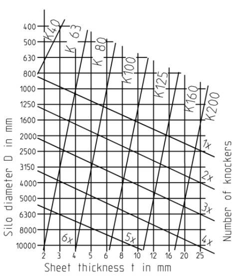 Verstärkungen der Silowände und zusätzliche Rippen sind zu vermeiden, da damit das Gewicht und die Festigkeit der Silowände erhöht und die Wirkung des Klopfers gemindert wird.
