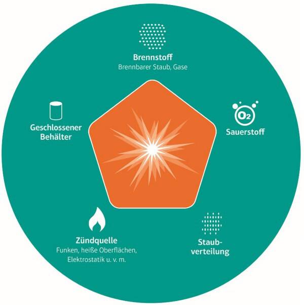 - Vermeiden der Entzündung von brennbaren Staubablagerungen bzw. explosionsfähigen Staub/Luft-Gemischen (vorbeugender Explosionsschutz)