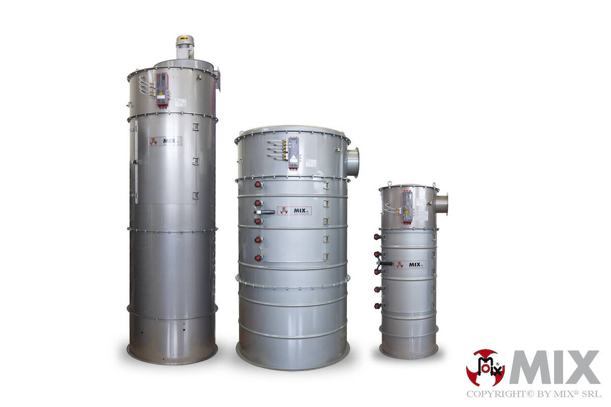 Staubabscheider mit Taschen- oder Patronenfiltern, komplett mit Konformitätserklärung EC1935/2004 für Lebensmittelanwendungen. Eine neue Serie von Staubabscheidern, ausgestattet mit Schlauch- und Patronenfilterelementen, wurde von MIX Srl unipersonale entwickelt. Komplett mit Konformitätserklärung EC1935/2004, geeignet für Anwendungen in der Lebensmittelindustrie.