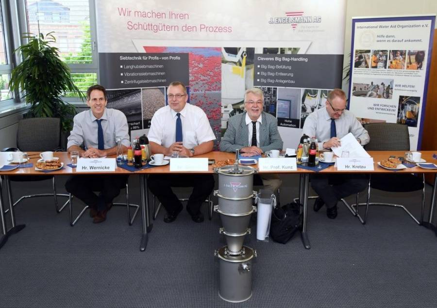 Engelsmann baut Prototyp für die Intenational Water Aid Organization Dass Siebtechnik auch Leben retten kann, zeigt ein aktuelles Projekt bei dem Engelsmann die International Water Aid Organization (IWAO) zusammen mit dem Institut für biologische Verfahrenstechnik der Hochschule Mannheim unterstützt. Das gemeinsame Ziel: Ein Notfall-Wasserkoffer der Opfern von Naturkatastrophen in den ersten drei Tagen den Zugang zu Trinkwasser ermöglichen soll.