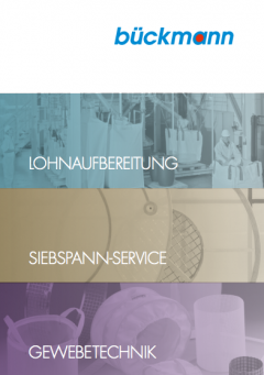 Auf Grundlage der Geschäftsbereiche Siebspann-Service, Gewebetechnik und Lohnaufbereitung ist BÜCKMANN ein Rundum-Partner für den Kunden aus der Schüttgutindustrie. Die Einsatzmöglichkeiten der angebotenen Produkte gehen aber schon lange Zeit über diesen Bereich hinaus und werden in vielen Branchen eingesetzt.