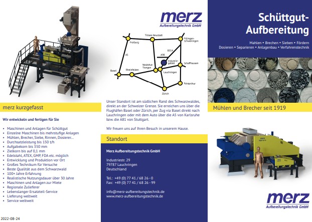 Seit 1919 plant und realisiert die Merz Aufbereitungstechnik GmbH erfolgreich Anlagen und Komponenten zur Aufbereitung von Schüttgut. Modernste Technik in den Kundenanlagen ist das Ergebnis kontinuierlicher Entwicklung bei Merz.