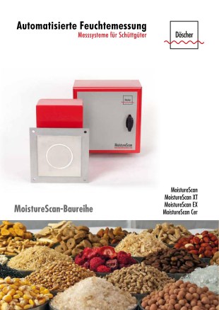 Neuentwicklung bei Döscher & Döscher Döscher & Döscher ist spezialisiert auf Feuchte- und Dichtemessung auf Basis innovativer Mikrowellentechnologie für Labor- und Prozessanwendungen Döscher & Döscher stellt, neben den bewährten Feuchtmessgeräten für den Prozess und das Labor, das neue MoistureScan Ex vor. MoistureScan Ex bietet sensorseitigen Explosionsschutz und ist innerhalb Zone 20 verwendbar (staubige Atmosphäre). Eine andere Version des Gerätes ist für Zone 20 vollständig verwendbar. Nutzen des Feuchtemessgerätes: - Der Prozessparameter Feuchte wird in explosionsgefährdeten Bereichen gemessen - Die Produktqualität wird schneller erreicht und der Ausschuss minimiert