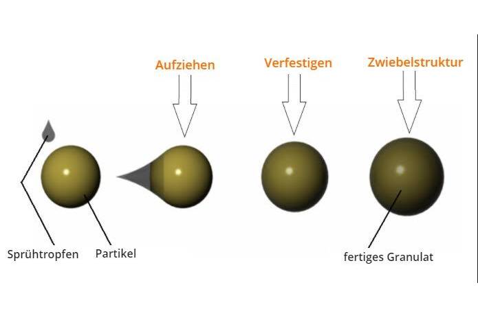 Vorteile der Wirbelschicht-Sprühgranulation  Bei der Wirbelschicht-Sprühgranulation entsteht durch gezielten Kornaufbau und Temperaturkontrolle Granulat in gewünschter Korngröße und hohe chemische Stabilität.