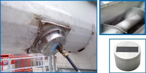Konstante Bedingungen und guten Materialfluss um tatsächlich den Prozess und keine künstlichen Ausschleusungen zu vermessen Um Schüttgüter verlässlich zu messen, ist es notwendig konstante Bedingungen und guten Materialfluss vor der Sonde herzustellen, um tatsächlich den Prozess und keine künstlichen Ausschleusungen zu vermessen. Eine besonders günstige Variante wurde bei der Anwendung einer SONO-VARIO LD in Italien gefunden. Der Schneckendurchmesser ist groß genug, um 108 mm Sondendurchmesser ohne Einschränkungen der Geometrie im Schneckengang zu ermöglichen. Typischerweise würden eine SONO-MIX Mini LD oder aber sogar die größere SONO-GS1 zum Einsatz kommen, da sie durch Ihre Rechteckform leichter in bestehende Geometrien und engere Schneckengänge einzubringen sind: