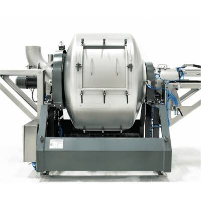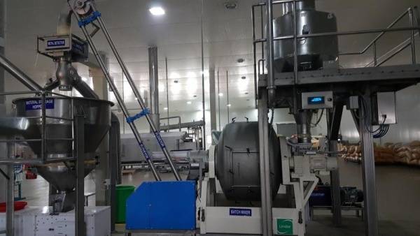 An ihrem neuen Standort in Deutschland sorgt eine maßgeschneiderte Mischanlage für mehr Effizienz in einer Verarbeitungslinie für Nährstoffpulver. Unsere jüngste Kundeninstallation wurde um eine Drehtrommel mit einem Fassungsvermögen von 3000 Litern herum konzipiert, die Nährstoffpulver homogenisiert und die Chargen mit Sonnenblumenöl besprüht. Wie bei allen Lindor Maschinen ist der Mixer-Coater, das Herzstück der Anlage, auf eine schonende Verarbeitung ausgelegt. Unsere schonende Mischtechnologie sorgt dafür, dass das Produkt homogenisiert und beschichtet wird, ohne dass es zu einer Verschlechterung kommt. Speziell entwickeltes Vakuum-Transportsystem Die Anlage verfügt über ein modernes Vakuumtransportsystem, das das Produkt in die Mischtrommel befördert. Das in Säcken verpackte Rohprodukt wird in ein Sieb gegeben, um Klumpen zu entfernen. Von dort aus pumpt ein flexibles Rohr das gesiebte Produkt in einen 40-Liter-Aufnahmetrichter, der es dann in die Mischtrommel fallen lässt. Bei der Konzeption der Anlage haben die Lindor Ingenieure darauf geachtet, dass das Produkt perfekt durch das Vakuumtransportsystem