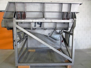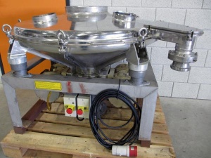 zum Kauf bei Surplus Select 1,1 m2 Siebfläche, Siebhilfe zum Freihalten des Siebgewebes mittels Gummibällen, Abdeckhaube mit Schauöffnung, Produktberührte Oberflächen in Edelstahl, Werkstoff 1.4571 (AISI 316 Ti), glasperlengestrahlt, 1,1 kW Umwuchtmotor, inkl. Aufstellungsgestell in Normalstahl, Siebeinsatz mit Edelstahldrahtsiebgewebe mit der Maschenweite 0,125 mm (einfach austauschbar für andere Maschenweite) Produktnummer: 2.47A2758 Mehr (gebrauchte) Siebmaschinen und sonstige Anlagen für die Schüttgutindustrie finden Sie auf unserer Website.