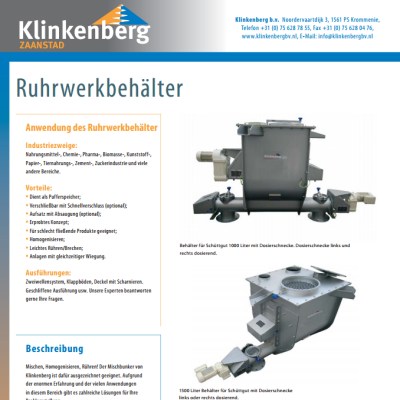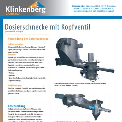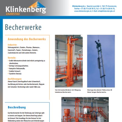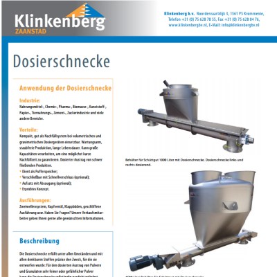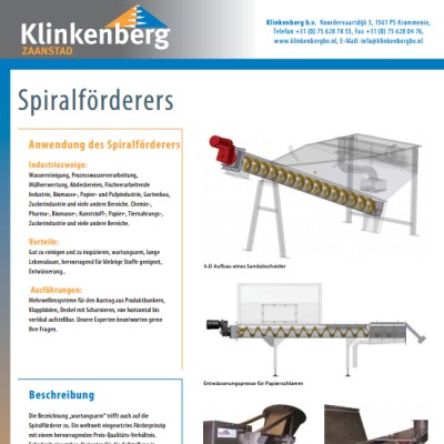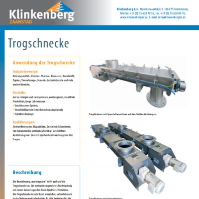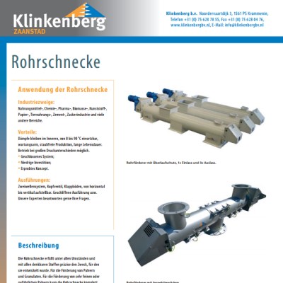 Die Maschinenfabrik Klinkenberg Zaanstad b.v. mit Sitz in Krommenie in den Niederlanden ist auf die interne Förderung von Schüttgütern und den Schüttgutumschlag mithilfe von Schneckenförderern spezialisiert.