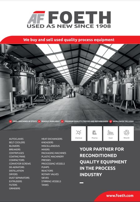 A.Foeth B.V. ist bereits seit 1908 aktiv im Ein- und Verkauf von gebrauchten Prozessmaschinen.
