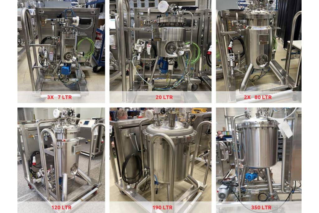Foeth unterhält einen großen Bestand an gebrauchten hochwertigen Edelstahlgeräten, darunter Reaktoren, Trockner, Mischer und Mühlen. Ausrüstungen aus Edelstahl sind aufgrund ihrer Langlebigkeit, Korrosionsbeständigkeit und Vielseitigkeit in zahlreichen Industriezweigen unverzichtbar. Foeth verfügt über einen großen Bestand an hochwertigen Edelstahlanlagen, darunter Reaktoren, Trockner, Mischer, Mühlen und vieles mehr. Profitieren Sie noch heute von der Kosteneffizienz und der sofortigen Verfügbarkeit von gebrauchten Anlagen. Zum Beispiel Pharmatec GmbH Impfstoffherstellungsanlage (Pharmabehälter) - NEUE Reaktoren aus rostfreiem Stahl. Arbeitsdruck: 3 Bar; Arbeitsdruck Mantel: 6 Bar; Vakuum möglich; Material: Edelstahl 1.4404 (316L); Fassungsvermögen: (3x) 7 Ltr., 20 Ltr., (2x) 80 Ltr., 120 Ltr., 190 Ltr., 350 Ltr.