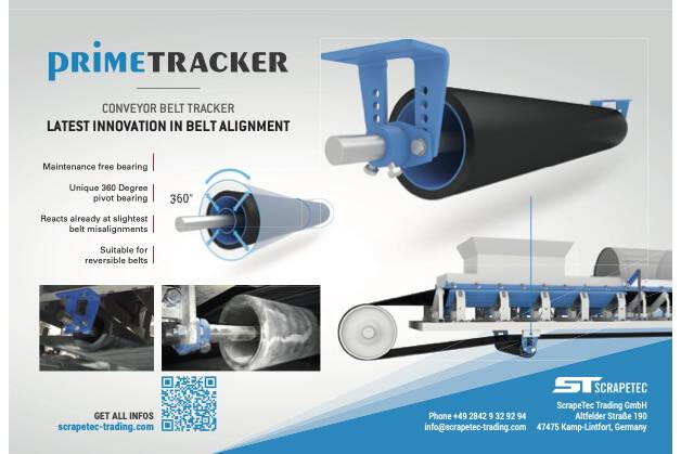 „Für eine optimale Leistung eines Fördersystems ist es entscheidend, dass das Band immer gerade auf dem Förderband läuft, ohne Schieflauf. Unser neuer PrimeTracker wurde entwickelt, um ein Förderband automatisch wieder in die richtige gerade Position zu führen, um kostspielige Ausfallzeiten und den Austausch von Komponenten zu vermeiden“, erklärt Thorsten Koth, Vertrieb bei Scrapetec. „Ein Vorteil des Scrapetec PrimeTracker ist, dass er immer in Leerlaufposition arbeitet, es sei denn, das Band bewegt sich seitwärts. Dieses System korrigiert Fehlausrichtungen sofort, indem es das Band in die richtige Position zurückführt, ohne dass das Band oder der Tracker beschädigt oder verschleisst.