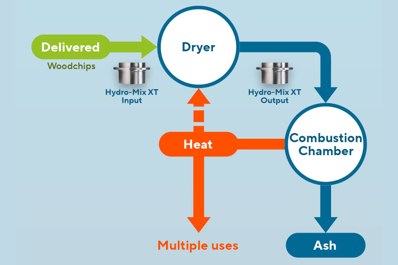 Feuchtigkeitsregulierung in Holzspänen mit Hydro-Mix XT (EX)  Der richtige Feuchtigkeitsgehalt des Holzes ist wichtig, um Schäden an den Prozessanlagen zu vermeiden. Die Online-Messung des Feuchtigkeitsgehalts mit Präzisionssensoren gewährleistet daher eine optimale Effizienz.