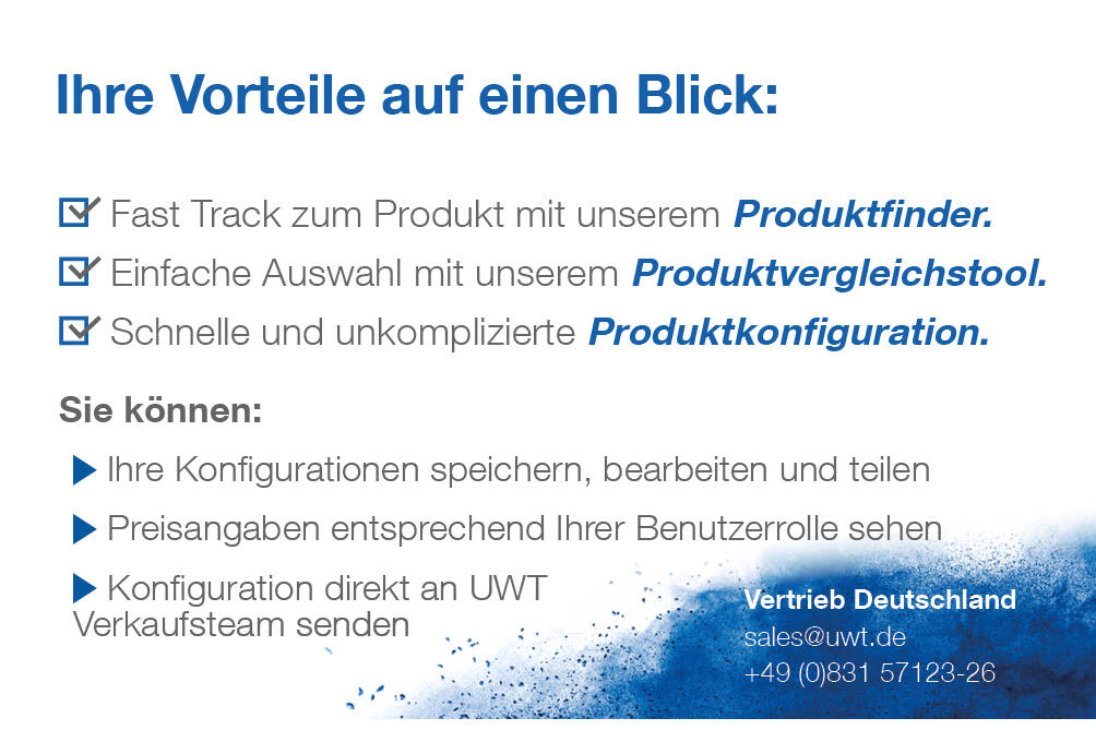 • Konfigurationen direkt an das UWT-Vertriebsteam senden