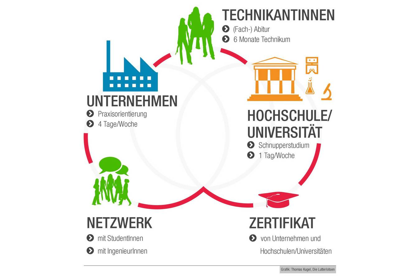Um Frauen in MINT-Berufen (Mathematik, Informatik, Naturwissenschaften, Technik) zu fördern, hat das Land Niedersachsen ein Programm für junge Frauen einberufen. Das Niedersachsen Technikum richtet sich an Abiturientinnen und bietet eine Möglichkeit zur Orientierung: Um vor einem Studium oder einer Ausbildung in MINT-Berufe reinschnuppern zu können, bekommen Schulabgängerinnen die Chance, bei kooperierenden Unternehmen einen Blick auf das technische Berufsleben zu werfen.