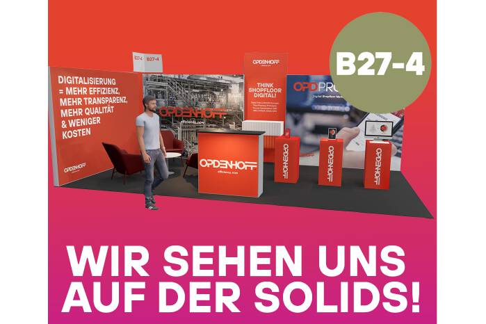 Endlich ist es wieder so weit. Uns hat der persönliche Austausch mit Ihnen gefehlt und umso mehr freuen wir uns, Sie dieses Jahr wieder auf unserem Stand auf der SOLIDS 2022 begrüßen zu können. Unser Stand leuchtet ihnen in OPDENHOFF RED entgegen und nicht nur optisch, sondern auch inhaltlich erwarten Sie dort spannende Gespräche mit unseren Experten rund um das Thema Shopfloor & Digitalisierung.