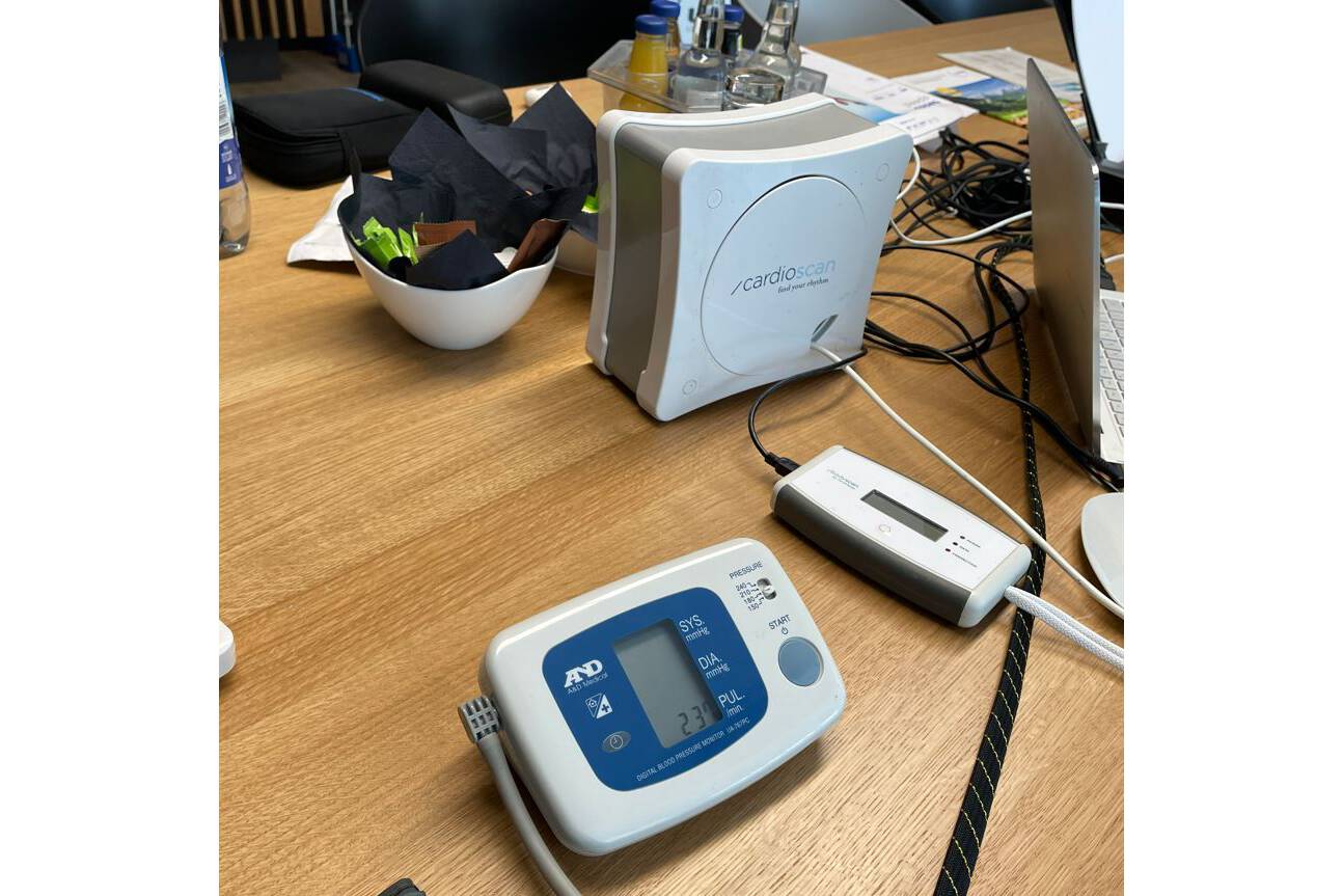 Wir messen nicht nur Füllstand sondern auch die Gesundheit unserer Mitarbeiter*innen. Messungen mit Dr. Pedro Gonzalez