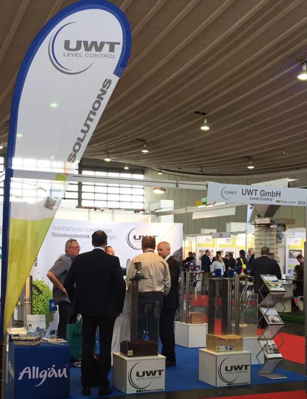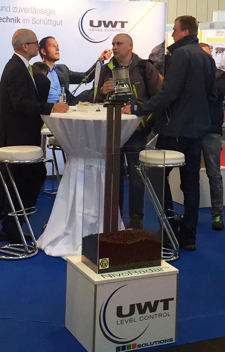 Die UWT GmbH demonstrierte unterschiedliche Lösungen in Sachen Schüttgutmesstechnik zur Inhalts und Grenzstanderfassung am Stand 4-B 18-4. Dabei wurden u.a. die neuen Features des kapazitiven Grenzschalters RFnivo® 3100 sowie die neue Schwingstabserie Mononivo® MN 4000 gezeigt. Außerdem konnte man den intelligenten NivoRadar® NR 3000 mit 78GHz Technologie in seinen Modellen mit und ohne Verstellflansch näher betrachten. Natürlich durfte auch das bewährte UWT Portfolio mit Lot, Vibrationsgabel und Drehflügelmelder an dieser Stelle nicht fehlen. Außerdem war das smarte Nivotec® Democase mit im Gepäck, um die Visualisierungssysteme der Nivotec® Reihe für ein optimiertes Silo Management zu veranschaulichen.