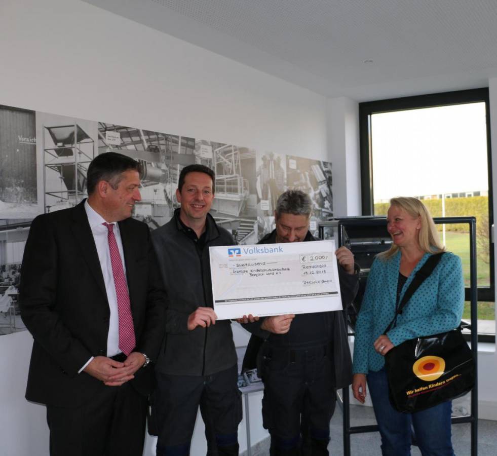 Jedes Jahr engagieren sich die Mitarbeiter der RHEWUM GmbH und die Geschäftsführung für gemeinnützige Vereine am Produktionsstandort Bergisches Städtedreieck. In 2018 ging die Spende in Höhe von 2.000 Euro an die ärztliche Kinderschutzambulanz Bergisch Land e.V.