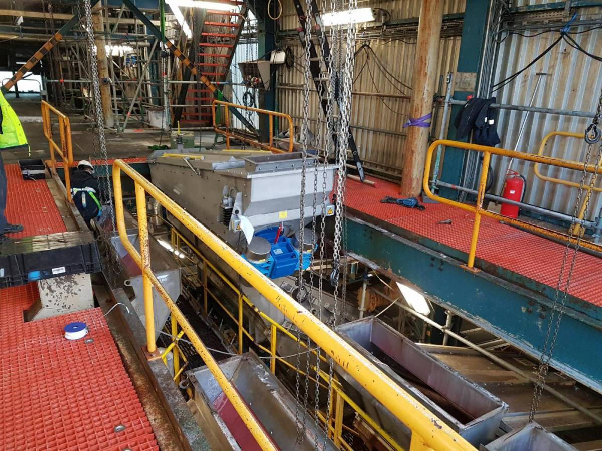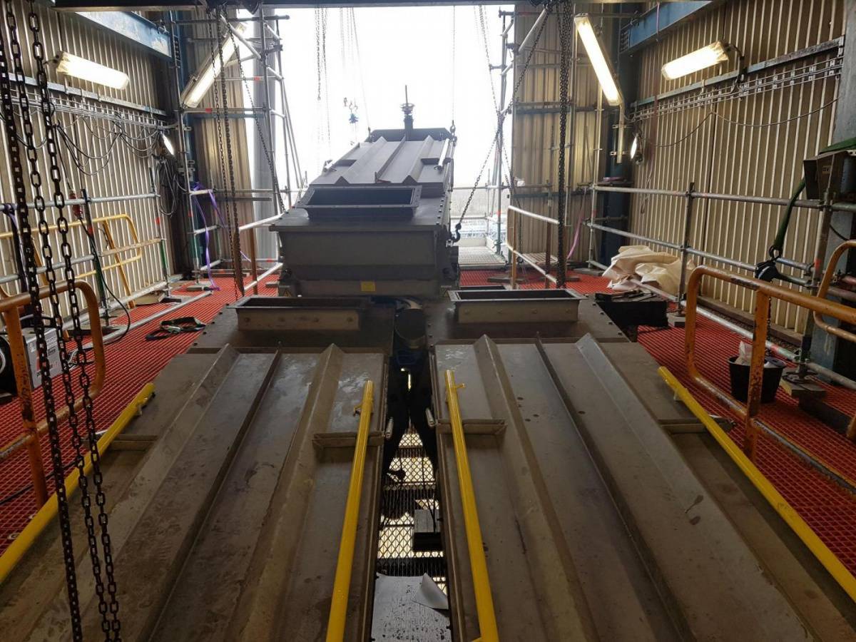 Die vorgesehene Menge an Schüttgut von 400 Tonnen pro Stunde, wird in die Fraktionen 2,5 Millimeter und 4,5 Millimeter klassiert. Essentiell für die effiziente Verarbeitung solcher Mengen, ist eine optimale Verteilung über die gesamte Breite des Siebes, welche mithilfe eines sogenannten SV-Aufgebers gewährleistet wird.