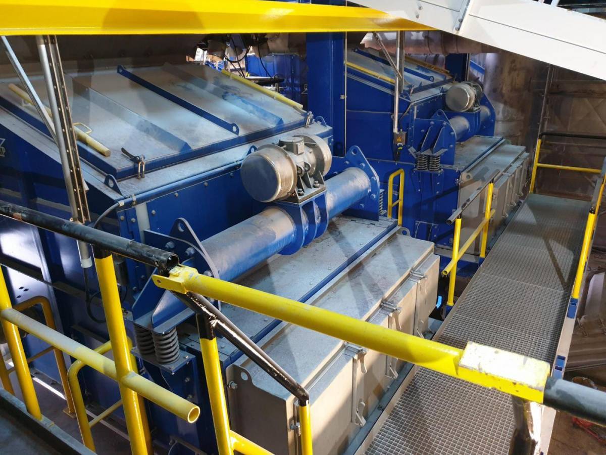 Bei der Erweiterung der Kapazität hat unser Kunde die vorhandene Siebstraße dupliziert. Neben der Kapazitätserweiterung wird damit auch eine erhöhte Verfügbarkeit erzielt. Die neuen Siebe wurden zusammen mit dem Kunden und seinen gesammelten Erfahrungen modernisiert und modifiziert und somit optimal auf die Anlage abgestimmt, womit eine Durchsatzmenge von bis zu 350 t/h erreicht werden kann. Der Aufbau der Anlage wird in zwei Stufen realisiert. In der ersten Stufe werden RHEWUM DF Grobsiebe mit nachgeschalteter RHEWUM RIUS eingesetzt (Trennschnitt 5,0 mm). RHEWUM WA Feinsiebe (Trennschnitt 3,2 mm) entfernen den feinen Staub in der zweiten Stufe.