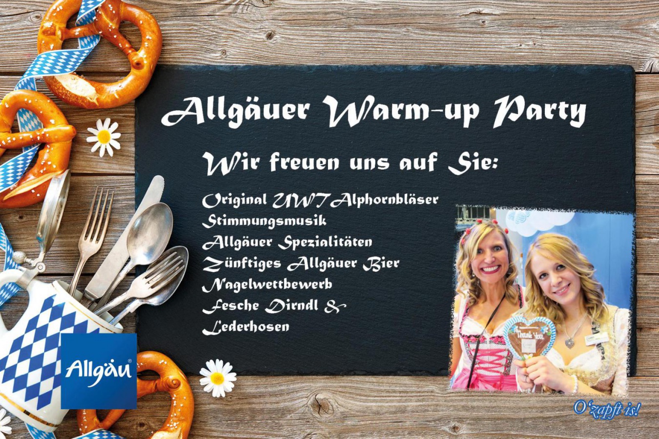Wie immer sorgt am zweiten Messeabend unsere „Allgäuer Warm-up Party“ für ein lustiges Beisammensein mit zünftigen Snacks, uriger Musik und traditionellem Flair. Schauen Sie gerne am 10. April ab 18:00 Uhr bei uns vorbei und erleben Sie einen unvergesslichen Messe-Event mit: