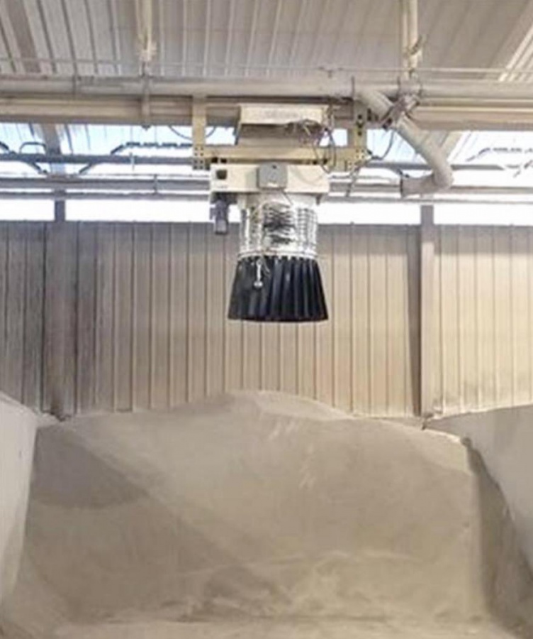 Zur Minimierung und Reduzierung des Staubproblems lieferte die Firma Vortex diesem Kunden sechs teleskopierbare Verladegarnituren mit einem Auslassdurchmesser von 508 mm. Jeder Auslass ist hierbei mit doppellagigen, trapezförmigen Staubschürzen ausgestattet die das Material beim befüllen umschließt und somit den Staub in der Garnitur während des Verladevorgangs behaltet.