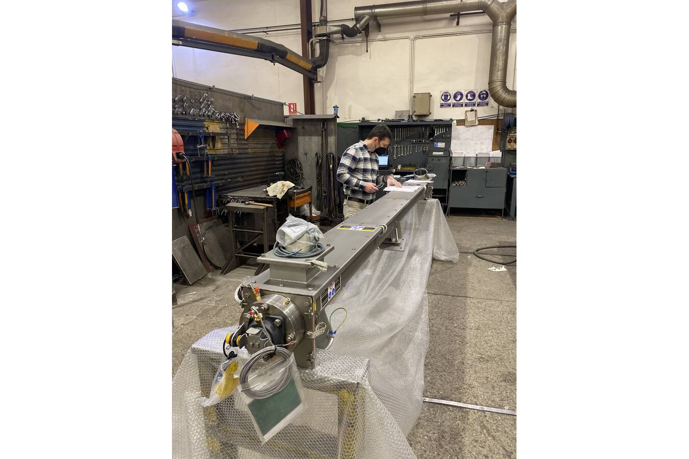 SINFIMASA entwarf und fertigte eine 3,5 m lange Förderschnecke, die komplett aus 316L-Edelstahl mit satinierter Oberfläche besteht und für die Zone 1/21 nach ATEX zertifiziert ist, um chemisches Pulver zu fördern.
