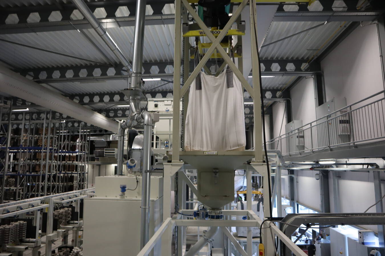 Das Streuen der Wachsbäume mit Keramikpulver erfolgt in Streukabinen. Jansen&Heuning hat diese Kabinen in enger Zusammenarbeit mit CIREX entwickelt. Jede dieser Kabinen hat eine Entladestation für Big Bags, die die Kabine mit dem Keramikpulver versorgen. Das Pulver, das nicht im Mantel des Wachsbaums landet und somit überflüssig ist, wird gesiebt und wiederverwendet. Für diese Rückführung wird ein Elevator eingesetzt. Bis auf das Aufhängen des Big-Bags ist der gesamte Prozess automatisiert.