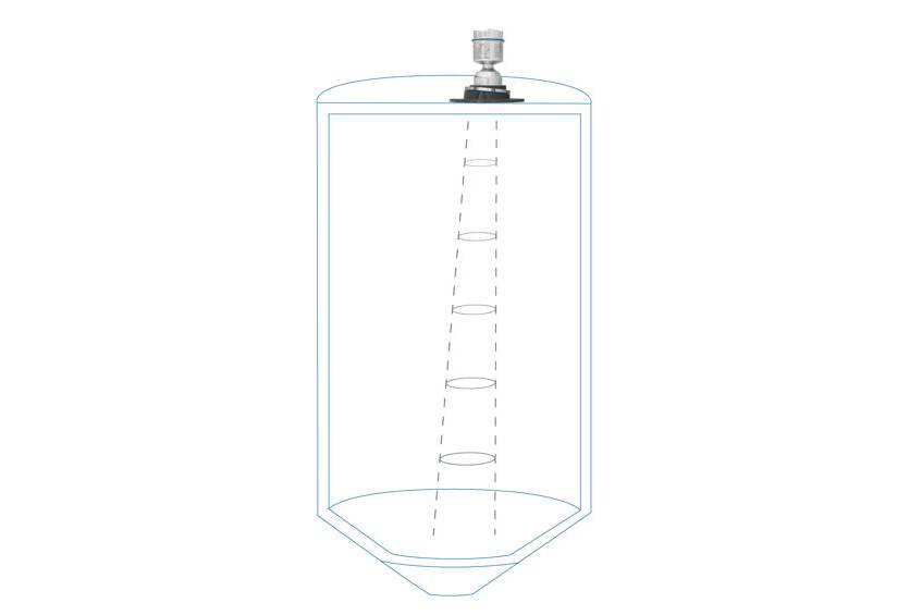 Freistrahlende Radarsensoren können den Füllstand eines Mediums berührungslos bestimmen. Dazu wird das sogenannte FMCW-Radarmessverfahren (Frequency Modulated Continous Wave) verwendet. Das ausgesendete Signal wird zwischen zwei bekannten Frequenzwerten moduliert (NivoRadar® 78...79 GHz) wobei der Unterschied zwischen dem übertragenen Signal und dem Echosignal gemessen wird. Diese Differenzfrequenz ist direkt proportional zur Laufzeit und somit zur Entfernung. Der Füllstand kann daraufhin über die Einstellung der jeweiligen Behälterhöhe errechnet werden.