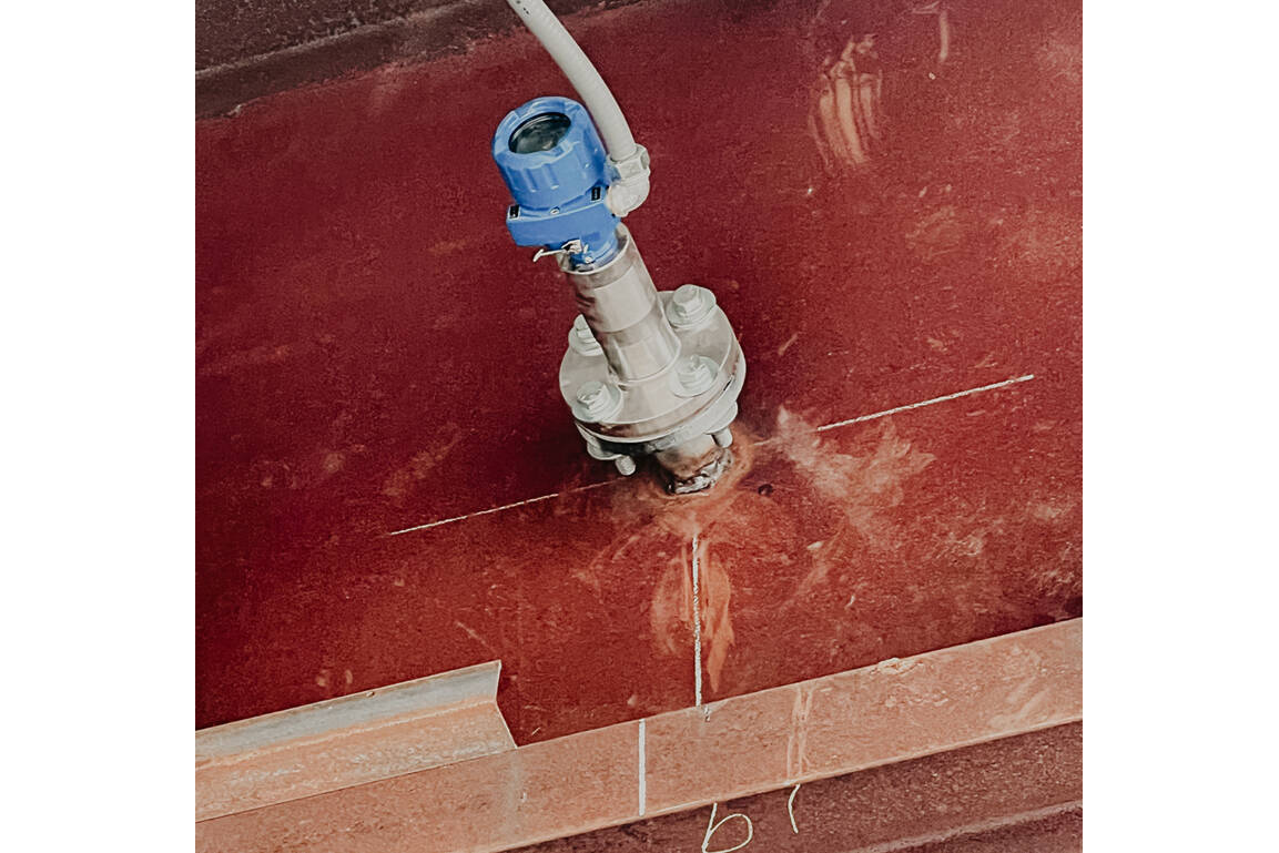 In dem trichterförmigen Einkammersilo herrscht ein Prozessdruck von bis zu 0,8bar (11,6psi). Es liegen keine Vibrationen oder elektrostatische Aufladung vor, jedoch herrscht eine staubige Atmosphäre. Die vorherrschenden DK-Werte von 2,0 – 3,0 beeinflussen den eingesetzten NivoGuide® Radarsensor mit niederfrequentierten Mikrowellenimpulse in kaum einer Weise, was ein verlässliches Messergebnis garantiert.