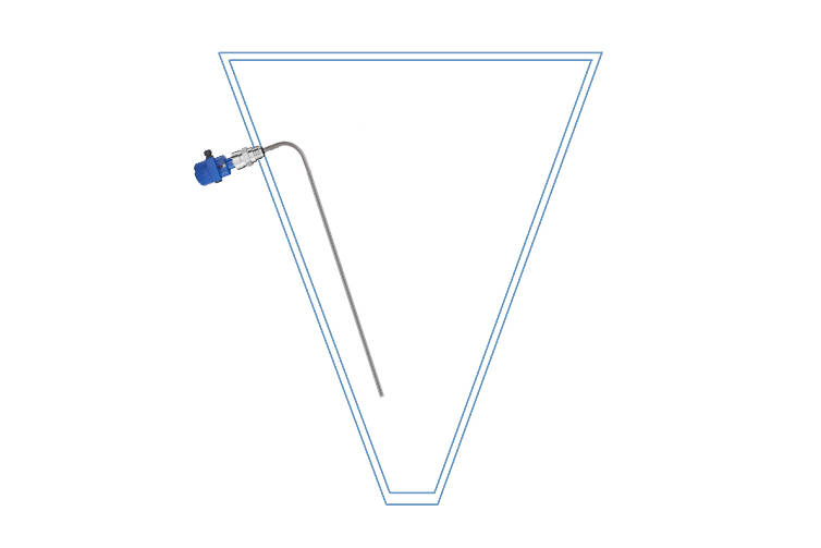 In solchen Situationen kommen üblicherweise freistrahlende Sensoren wie das NivoRadar® 3000 oder NivoRadar® 4000 zum Einsatz. Die speziellen Prozesstrichter in der Anlage in South Carolina stellten jedoch eine ungewöhnliche räumliche Herausforderung dar, da der notwendige Freiraum an der Oberseite für eine konventionelle Gerätemontage fehlte. Diese Problematik erforderte einen innovativen Ansatz, der über die herkömmliche vertikale Montagetechniken hinausgeht.