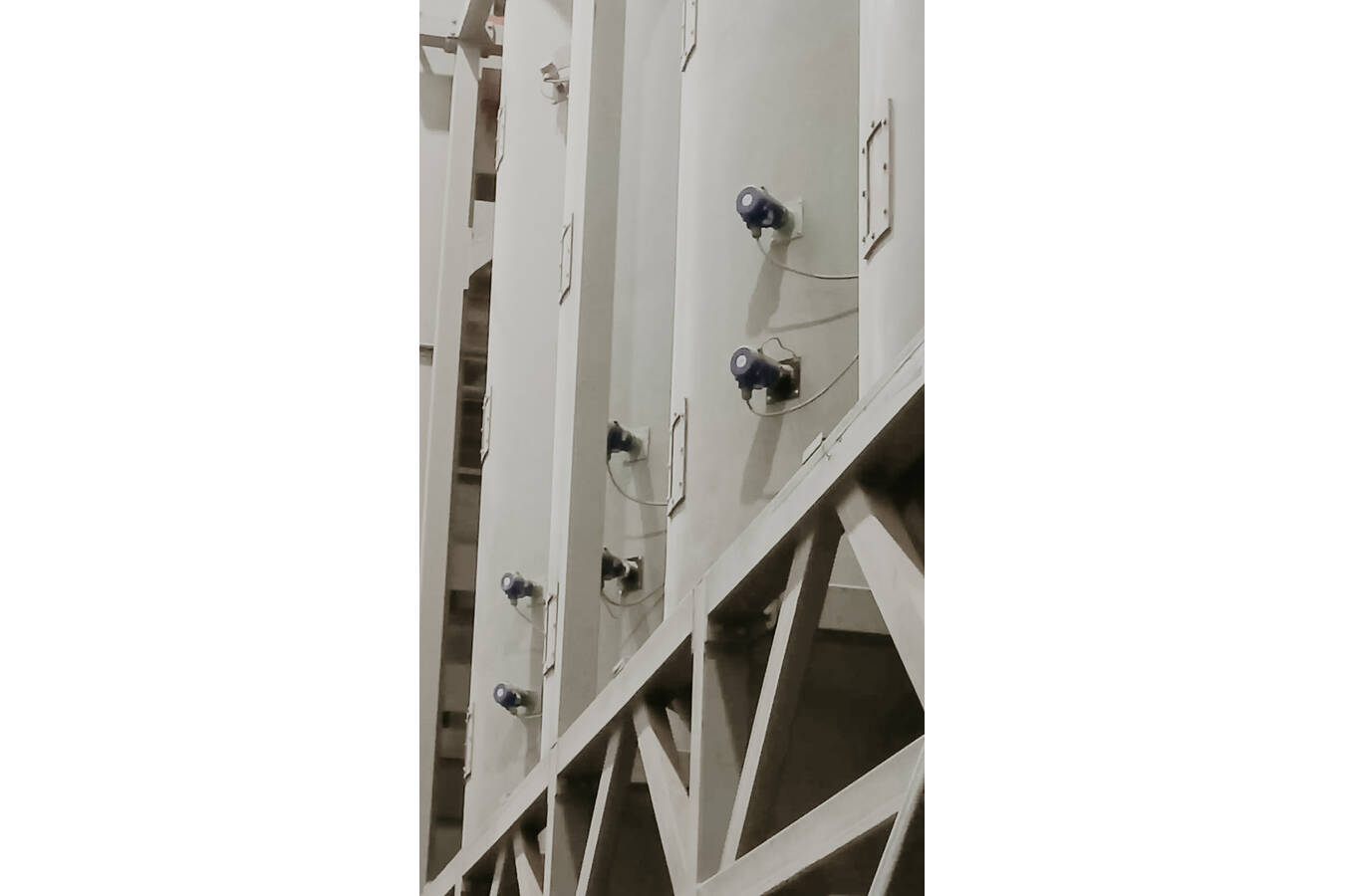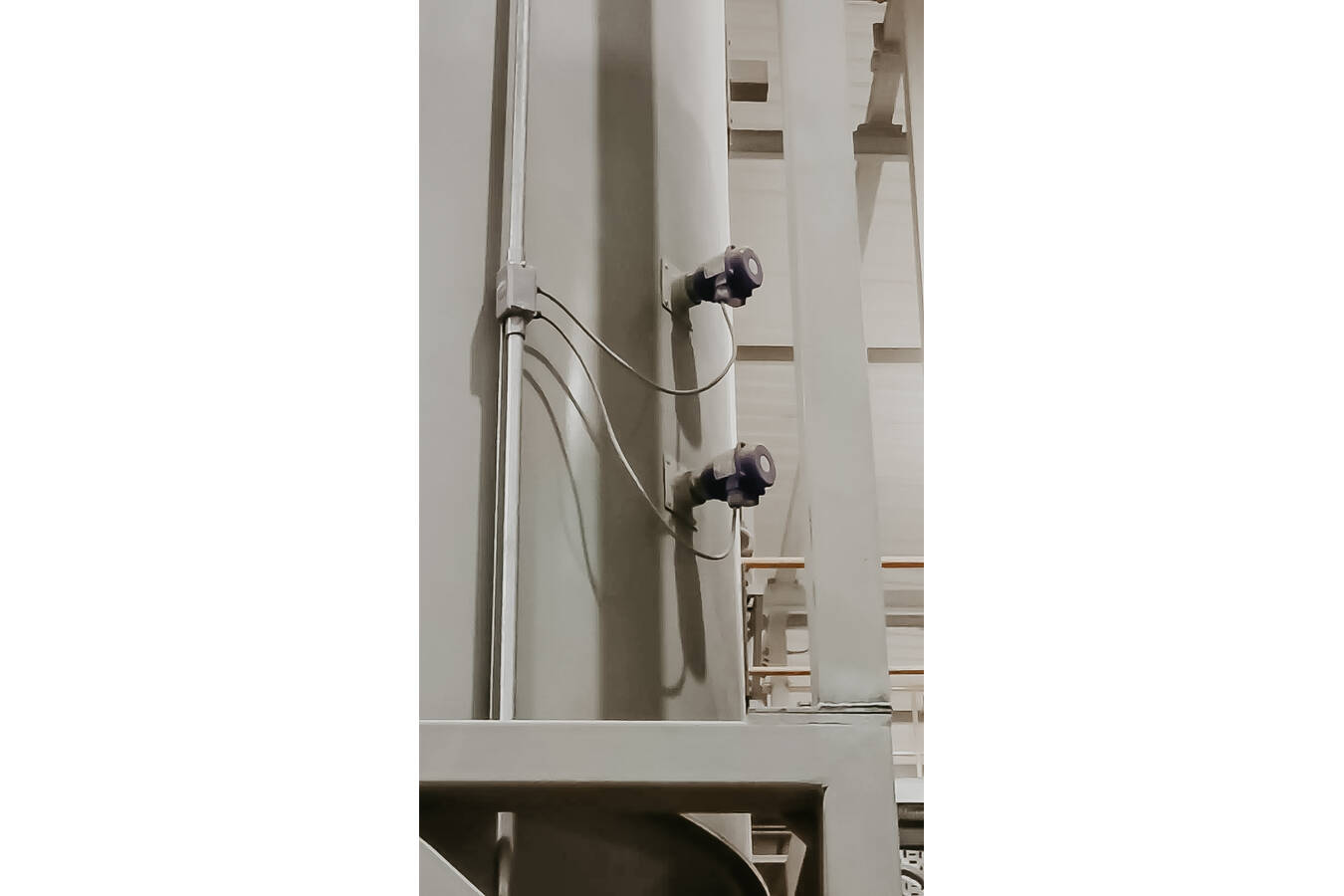 Für diese spezifischen Anforderungen wählte die UWT GmbH den Vibrationsschalter Mononivo® - MN 4020 aus. Dieser Sensor besticht durch seine hohe Empfindlichkeit, die in vier Stufen ab 20 g/l einstellbar ist und dadurch eine exakte Messung auch bei sehr niedrigen Dichten ermöglicht. Für die 4 Meter hohen Einzelkammersilos wurde der Schwingstab seitlich eingebaut. Dies ermöglichte eine maßgeschneiderte Erfüllung der spezifischen Kundenanforderungen.