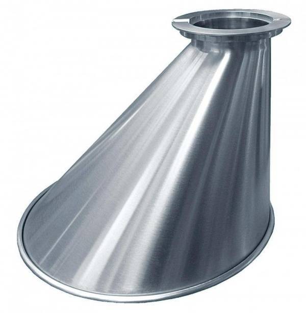 Die Entleerung von Fässern ist ein kritischer Vorgang, bei dem wertvolles Produkt verloren gehen kann. Die Fasstrichter erleichtern diesen Arbeitsschritt durch das totraumarme Design und ermöglichen dadurch ein staub- und verlustarmes Umfüllen des Mediums. Durch die Möglichkeit des frei wählbaren Winkels der Trichter und mit einem Auslauf von nur 40 mm Innendurchmesser können kundenspezifische Anwendungen problemlos erfüllt werden. Ein besonderes Highlight sind die asymmetrischen Trichter, welche aus nur einer Abwicklung gefertigt werden Diese können nach Kundenwunsch spezifiziert werden. Rautiefen von 0,25 µm und Elektropolitur sorgen für ein problemlosen Entleeren ohne Anhaftung.