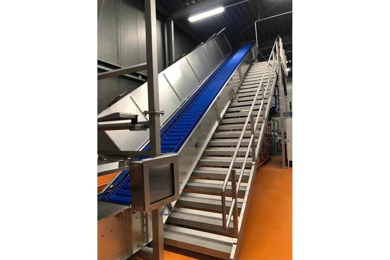 Die Installation ist gemäß EC1935-2004 und den FDA-Richtlinien lebensmittelecht. Die Transportanlage hat ein Minimum an Nähten und kann schnell und einfach gereinigt werden. Falls gewünscht, kann eine Nassreinigung durchgeführt werden. Ein automatisches Luftmesser ist ebenfalls vorhanden, um die manuelle Reinigung auf ein Minimum zu beschränken. Die manuelle (Nass-) Reinigung wird nur bei sehr kritischen Produktänderungen durchgeführt.
