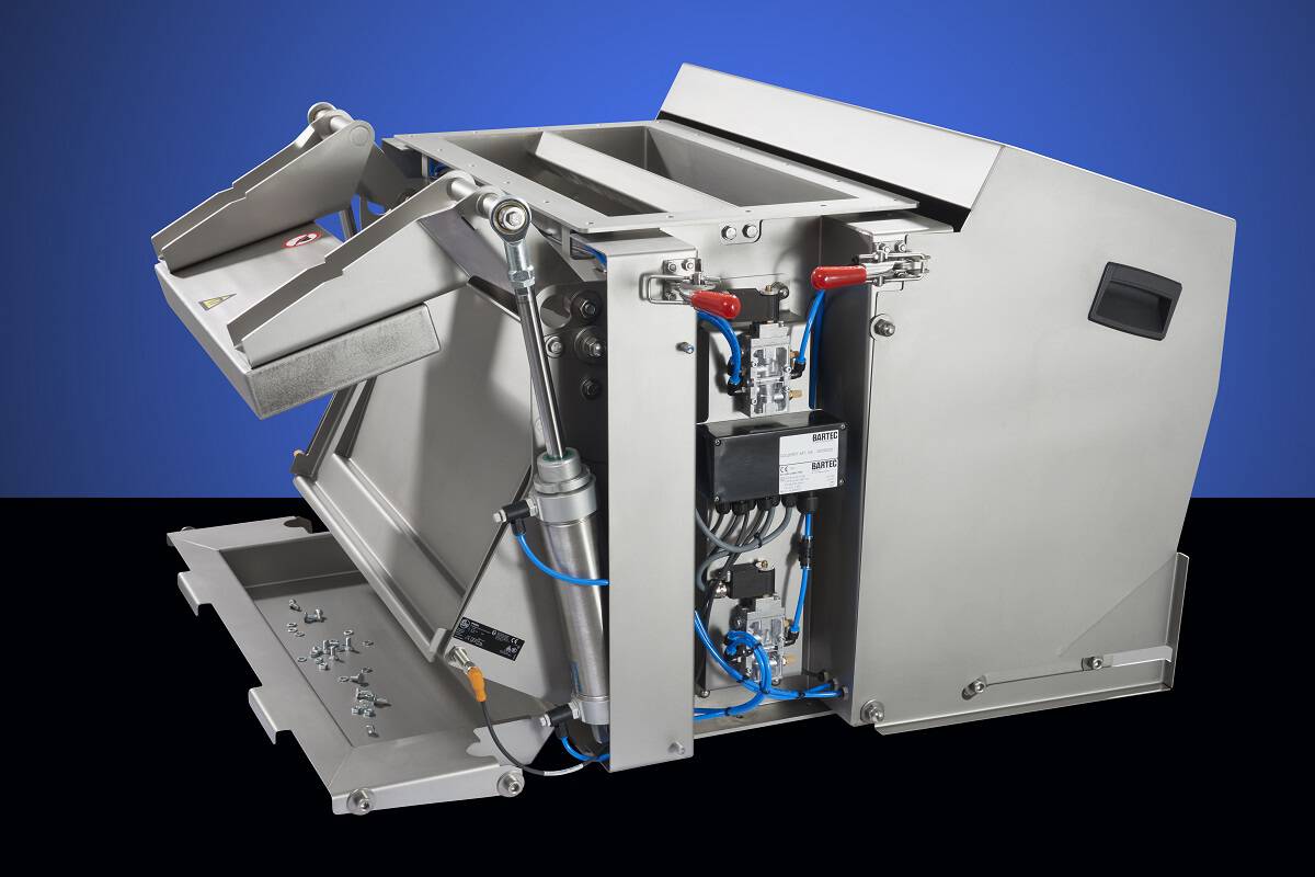 Der auf dem Victam-Stand 1351 gezeigte Magnet kann für die Aufnahme in Schiffsentladeanlagen verwendet werden und dient dem Schutz der Maschinen. Formen, Mahl- und Mischanlagen können durch unerwünschte Metallpartikel beschädigt werden. Der Außenpolmagnet ist für die Grobabscheidung vorgesehen und trennt Teile größer als 2 mm. Für die Abscheidung feinerer Metallpartikel sind Magnetstäbe geeignet. Die vollautomatische Reinigung ist in das Prozesssystem integriert und erfolgt auf Knopfdruck, ohne dass ein Bediener eingreifen muss. Durch die geringe Einbauhöhe von 500 mm lässt sich das System leicht in bestehende Anlagen einbauen.