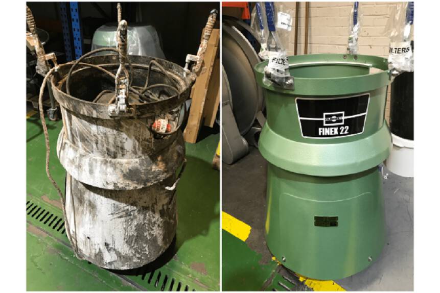 Russell Finex überholte ein abgenutztes, 30 Jahre altes Industriesieb Finex 22”, um sicherzustellen, dass die Ausrüstung für maximale Leistung gewartet wird. Die Maschinen von Russell Finex sind auf Langlebigkeit ausgelegt, und der Kundendienst der Gruppe ist immer bereit, dafür zu sorgen, dass die Geräte für maximale Leistung gewartet werden.
