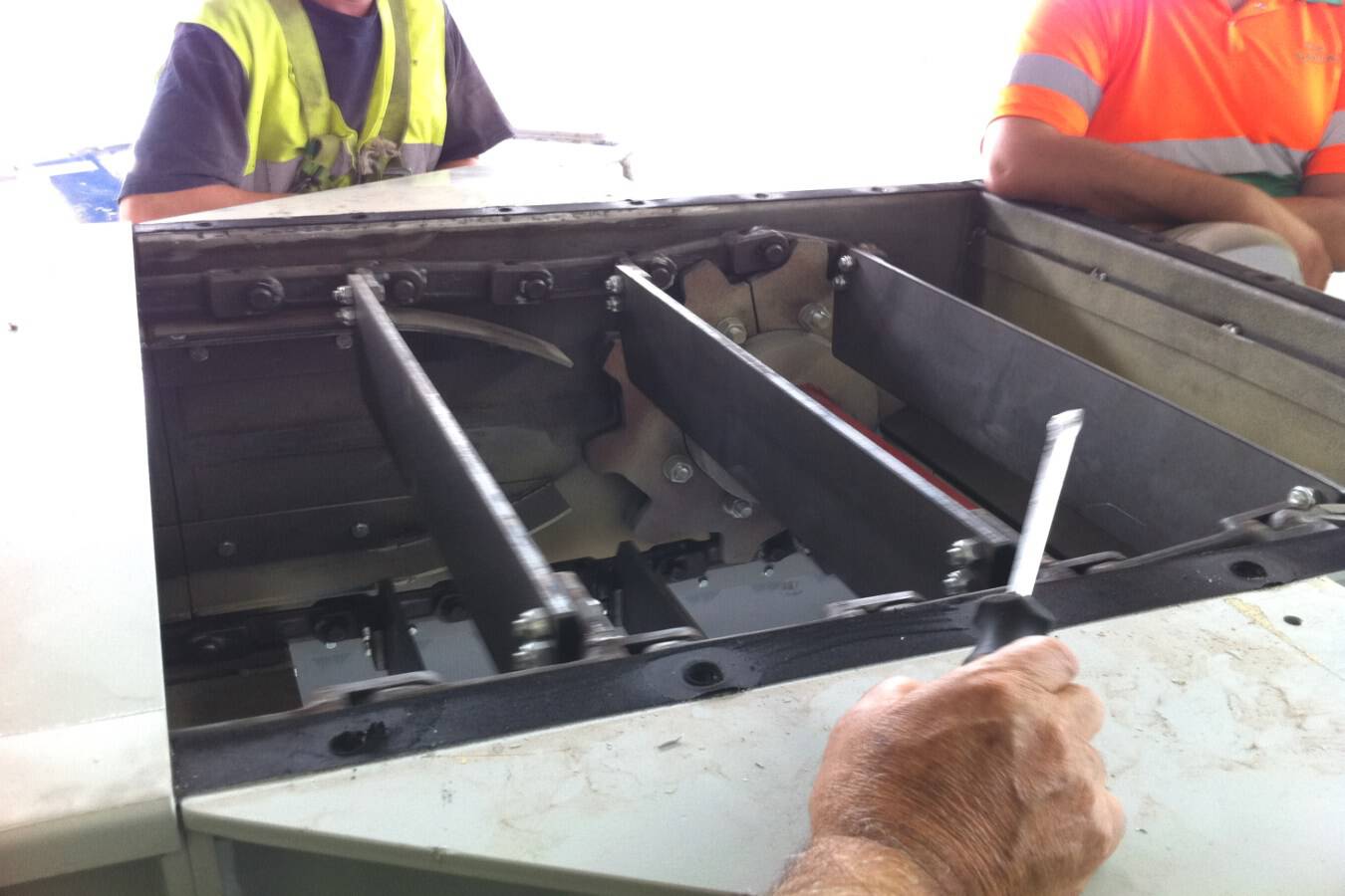 Um ein Abheben der Kette in den Kurvenabschnitten zu verhindern, wurden spezielle Führungen sowie Antriebs- und Umlenkräder aus verschleißfestem Stahl eingebaut. Die Guillotine-Schieber wurden mit einem schnellen pneumatischen Antrieb ausgestattet. Die drei Förderer wurden außerdem mit Rotations- und Staumeldern ausgestattet, um den korrekten Betrieb zu überwachen, sowie mit verschiedenen Kontrollpunkten, Registern und Kontrollfenstern, um die Wartung zu erleichtern.