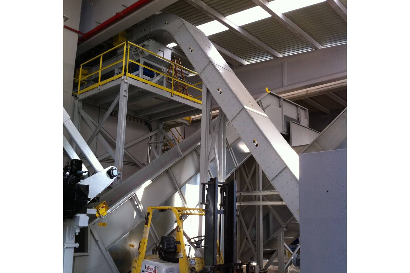 Sinfimasa entwarf drei Kettenförderer für den Transport von SRF. Die Abtrennung zweier Brandabschnitte war wichtig, daher wurde einer der Förderer mit Feuerschutzschiebern ausgestattet.